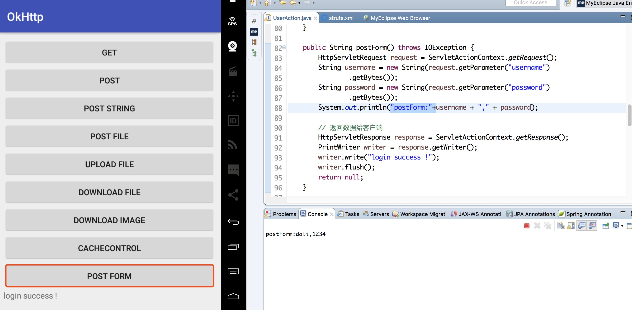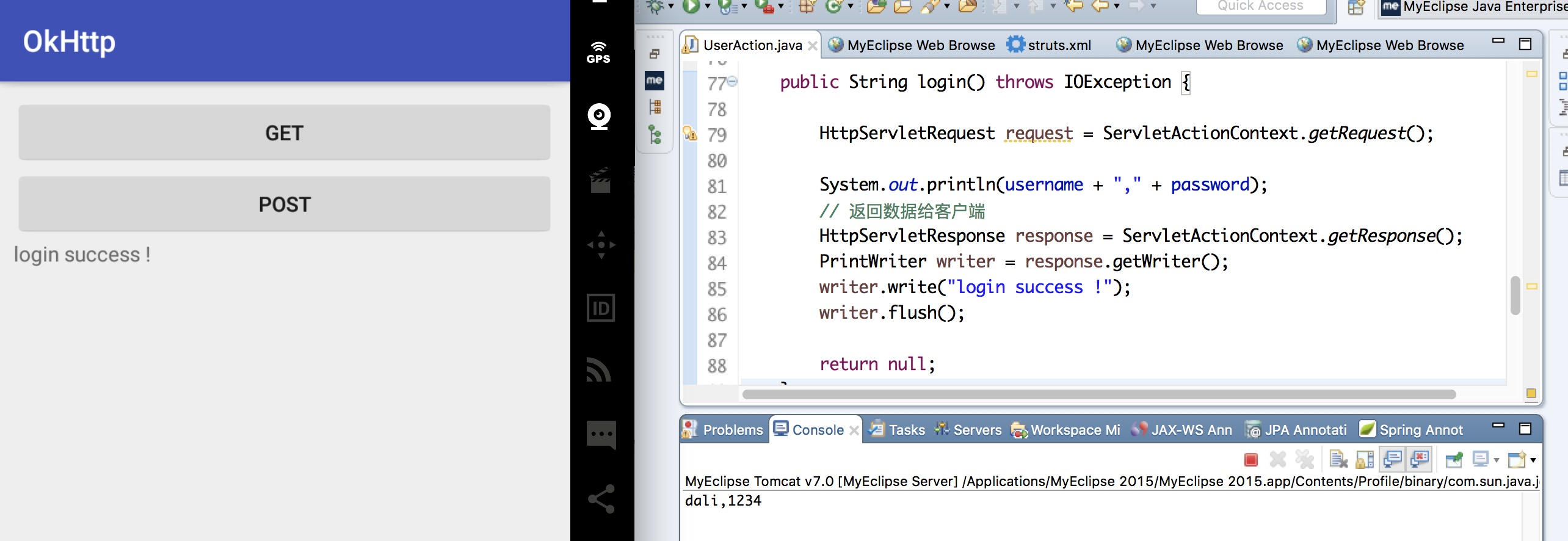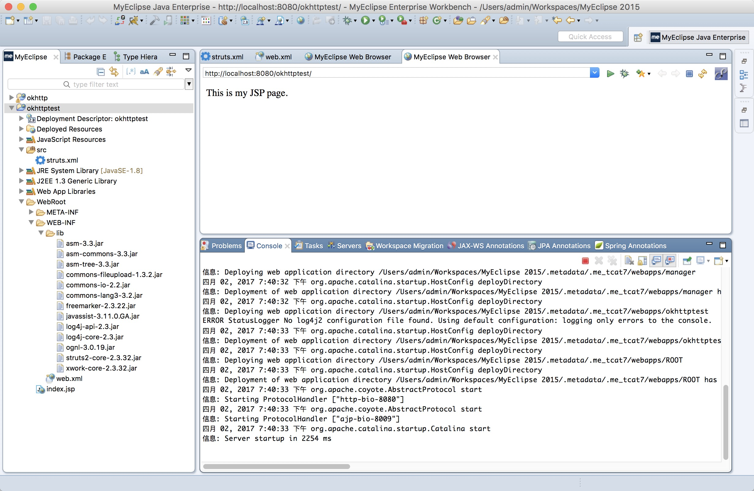 和 tomcat 的配置这里不细讲,但是我会找到教程 windows 下 MyEclipse 和 Tomcat 配置 、 mac 安装 tomcat、Mac 下 MyEclipse 和 tomcat 配置,会介绍一下如何集成 struts 架构。