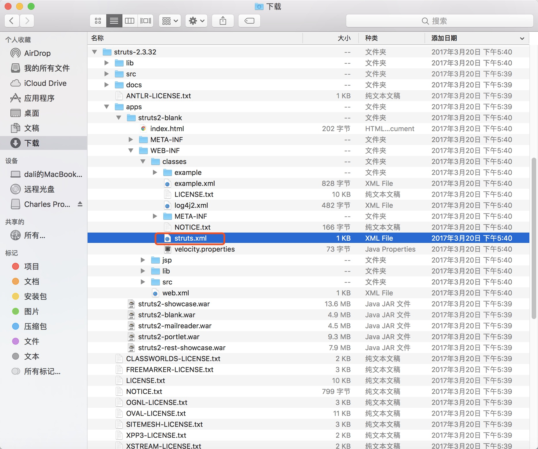在下载好的 struts-2.3.32 包中,找到 apps 包,解压 struts2-blank.war 包,找到 WEB-INF 下的 lib