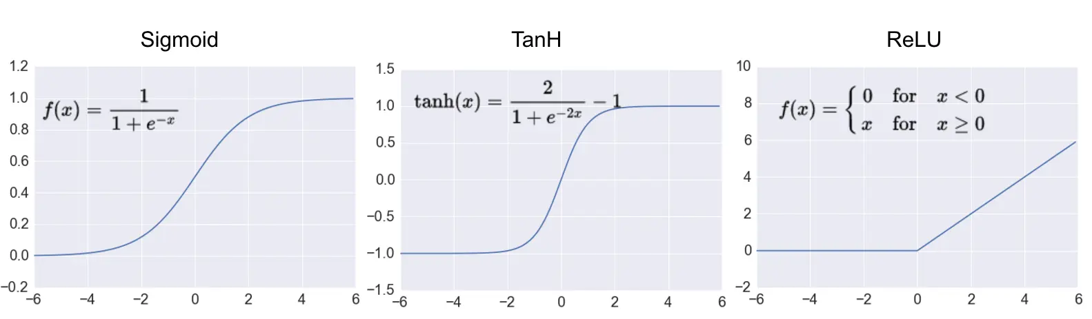 上图为最常用的激活函数:Sigmoid、Tanh 和 ReLu(又名修正线性单元)