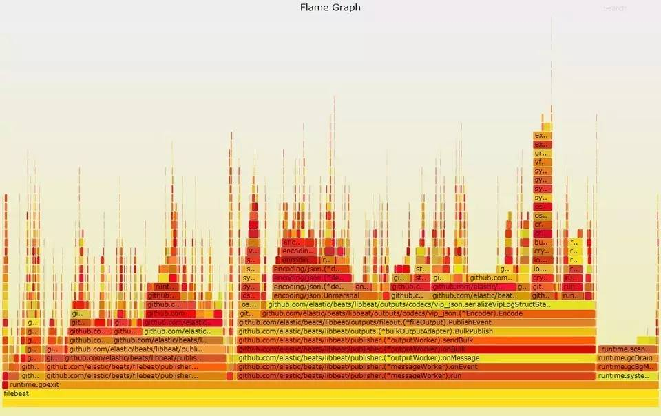 火焰图是性能分析的一个有效工具,这里(http://www.brendangregg.com/flamegraphs.html)是它的说明。通常看到的火焰图,是指on-cpu火焰图,用来分析cpu都消耗在哪些函数调用上。