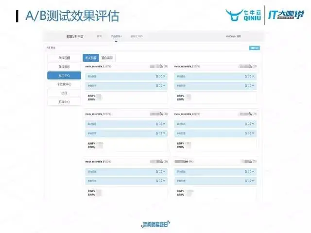 在推荐平台中最重要的一个功能就是A/B测试,A/B测试主要是对用户进行抽样分流道不同的算法组合当中,最后通过评估数据来驱动算法工程师对算法效果不断的进行调优。