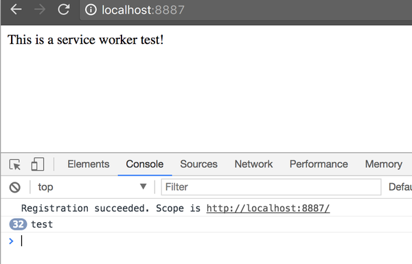 console.log('Registration succeeded. Scope is ' + reg.scope);