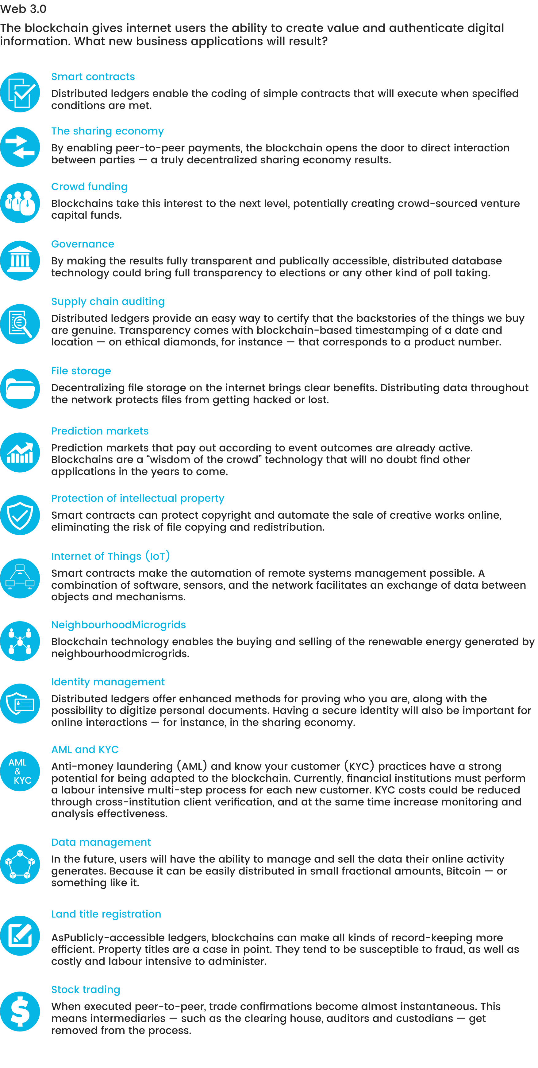 在网络上需要更好的身份管理。 验证您的身份的能力降低在线发生的金融交易的隐患。 但是,网络商务所带来的安全隐患的补救办法是不完美的。 分布式分类帐提供增强的方法来证明您是谁,以及将个人文档数字化的可能性。 拥有安全身份对于在线互动也是重要的,例如在共享经济中。 毕竟,良好的信誉是在线交易的最重要条件。