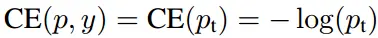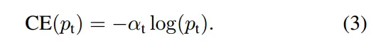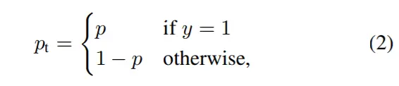 公式1中,y∈{±1} 指定了 ground-truth class,p∈[0,1] 是模型对于标签为 y = 1 的类的估计概率。为了方便起见,我们定义 pt 为: