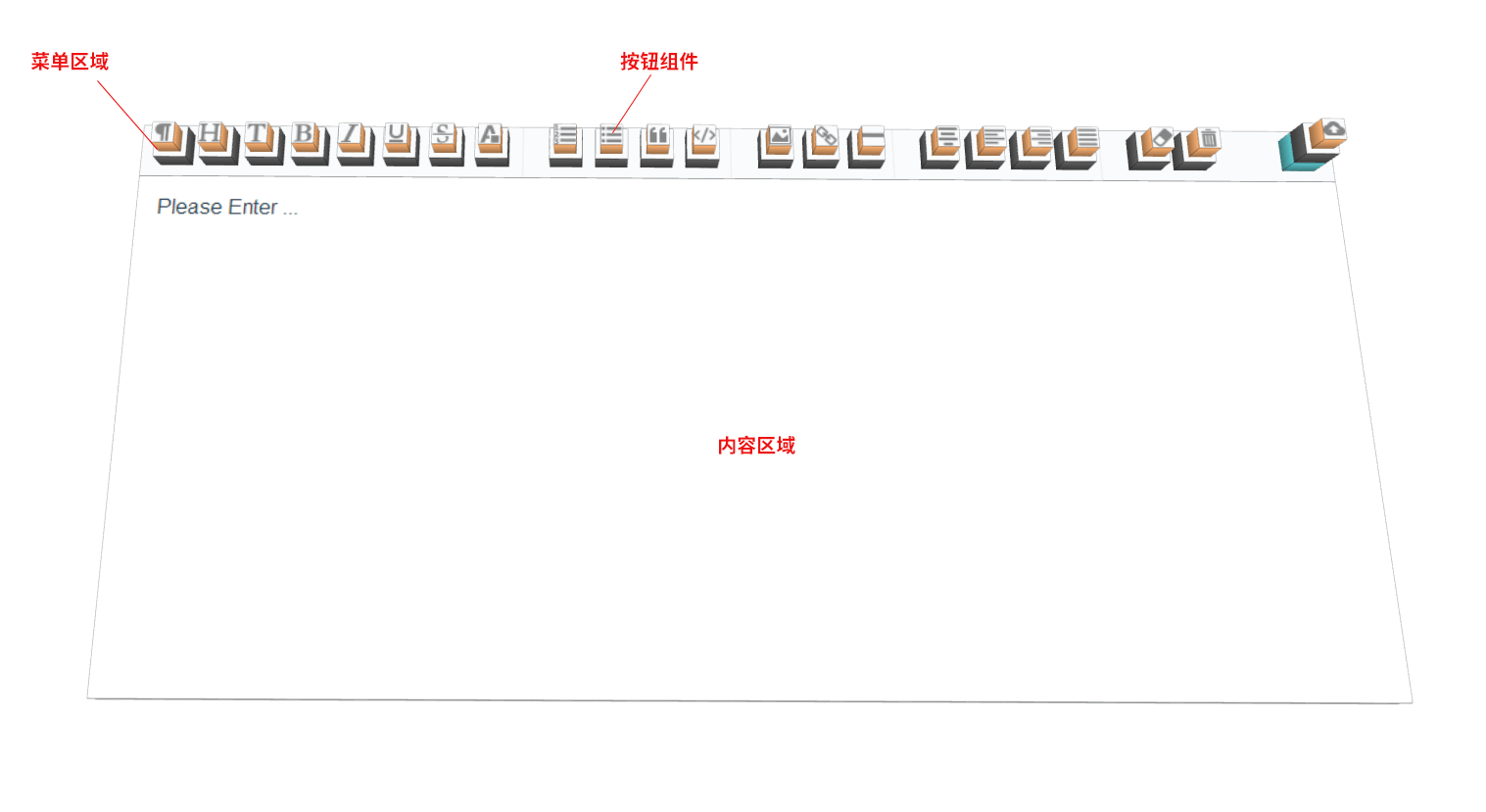 组件由 菜单部分和内容区域 2大部分组成, 其中菜单区域又由各种 指令按钮 组成,部分指令按钮还有下拉选项