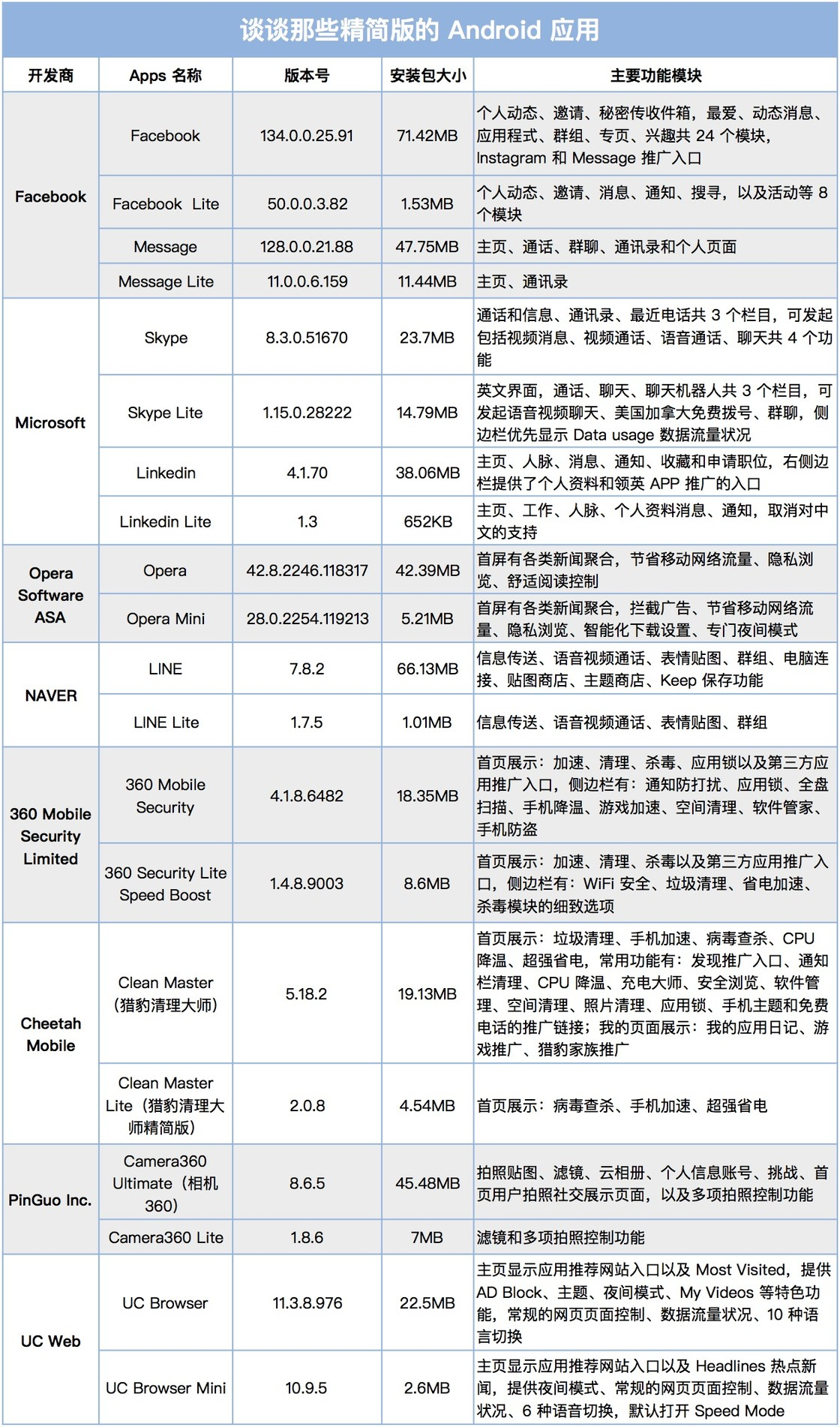 所以,这篇分享文的初衷:谈谈那些精简版的 Android 应用,究竟这些挂着 Lite 标志的应用,有何魅力可以助推大公司在亚洲和其它地区收获如此惊人的用户数量,是否存在功能阉割难用的尴尬问题。