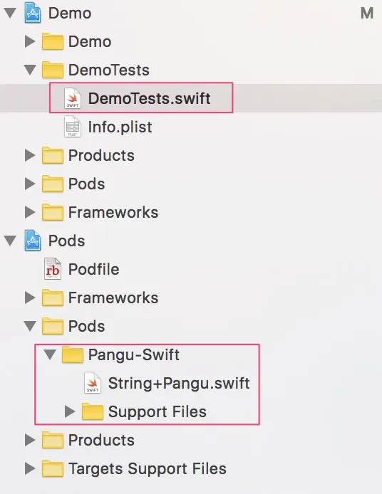 在过去不支持这个功能的时候,如果要为一个 pod 添加测试就需要另外一个工程依赖之,然后把测试文件都添加到离此 pod 十万八千里的地方,如下图所示,