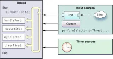 Cocoa 和 CoreFoundation 框架 对 port-based input soruces 相关的对象和函数提供了内置的支持.比如Cocoa 中,你永远不必直接创建一个 input source,你可以直接通过方法创建一个 NSPort,然后直接将这个 port 对象加入到 runloop 中. NSPort 对象会负责自己创建和配置 input source.