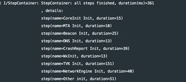这个方法是需要重点优化的,因为大家的第三方插件初始化一般都会放在这里,在Application初始化做繁重的东西会严重阻塞app启动(DiskIO,网络请求等)。以下是我们第三方插件初始化的耗时: