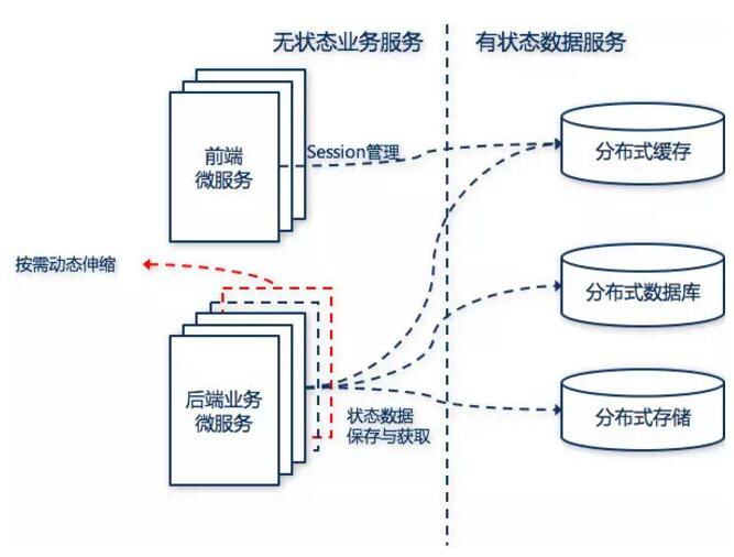 在微服务架构下,每个微服务拆分的粒度会很细,并且不只有用户和微服务打交道,更多还有微服务间的调用。这个时候上述两个方案都无法满足,就要求必须要将 Session 从应用服务器中剥离出来,存放在外部进行集中管理。可以是数据库,也可以是分布式缓存,如 Memchached、Redis 等。这正是 David Borsos 建议的第二种方案,分布式 Session 方案。