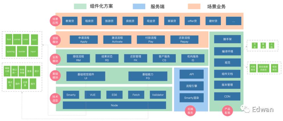任何新成立的项目组,FE需要做的第一件事情应该都是组件化,下面这个图应该会比较清晰的介绍我们工作