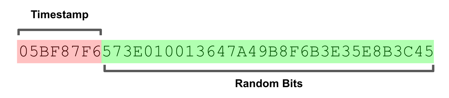 KSUID比UUID和Flake ID更大,共包含160位。其中包含一个32位时间戳和一个128位随机生成载荷。该技术的唯一性不依赖任何主机可辨识信息或时钟,而是与第4版UUID类似,依赖如此大规模号码空间内出现随机碰撞的不可能性。为了降低实现工作的复杂度,我们将122位的第4版UUID四舍五入至128位,此举也使其抗碰撞能力提升了64倍,而这还是在不考虑额外增加的32位时间戳的情况下。