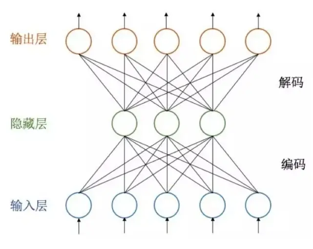“筑巢”的方法可大致分为无监督和有监督两类。其中,无监督是指只利用数据中的属性信息,而不使用标签信息。它一般是通过最小化重构误差来学习特征的表示空间,如下图所示的自编码器(autoencoder)所示,通过最小化输入和输出之间的误差,来训练该神经网络,最后使用隐藏层及其相关联的参数来代表所要学习的特征表示。除自编码器外,还有流形学习(manifold learning)、稀疏编码(sparse coding)等方法。