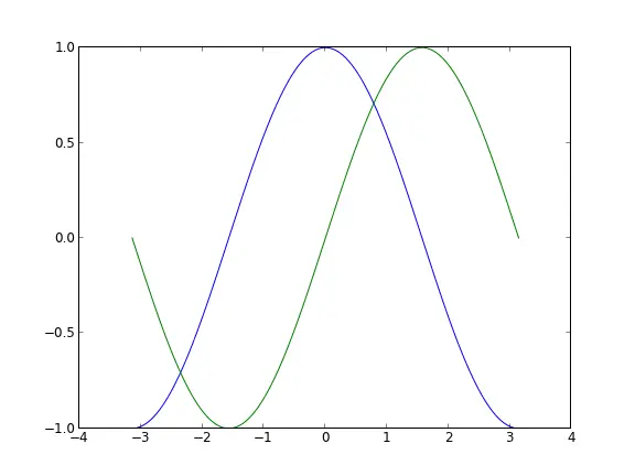 # 绘制余弦曲线,使用蓝色的、连续的、宽度为 1 (像素)的线条