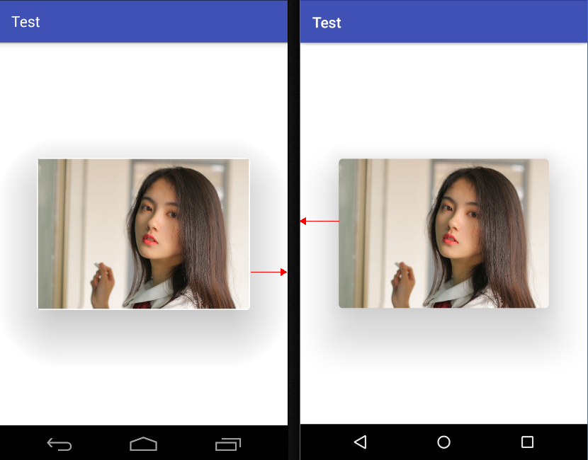为了展示出效果,我将elevation设置的比较大,测试设备nexus4 768x1280。