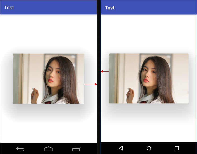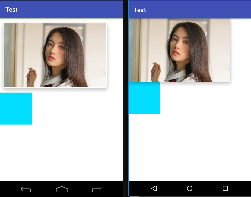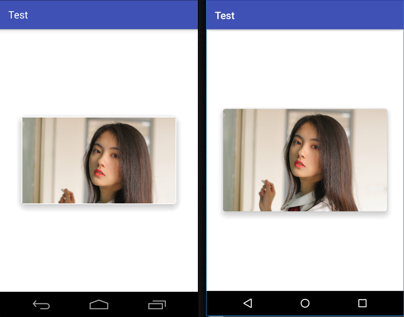 下图左侧为Lollipop以下版本,右侧为Lollipop版本,cardUseCompatPadding = true。