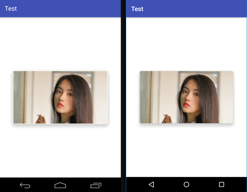下图左侧为Lollipop以下版本,右侧为Lollipop版本,cardUseCompatPadding = false。