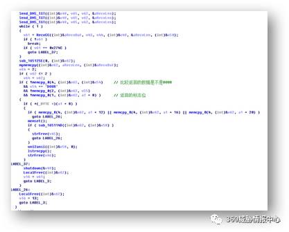 接着,将前面收集的网络、计算机、用户信息按照特定算法编码成字符串,然后作为上面的域名前缀,构造成查询*. nylalobghyhirgh.com 的DNS TXT的数据包,分别向8,8,8,8 | 8,8,4,4 | 4,2,2,1 | 4,2,2,2 | [cur_dns_server]发送,然后等待服务器返回。