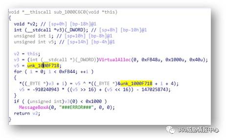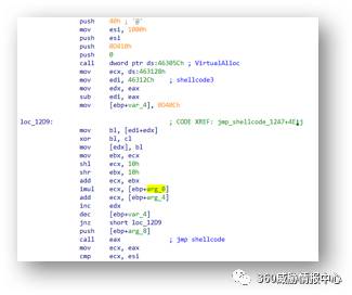 360威胁情报中心发现其存在加载执行Shellcode的功能: