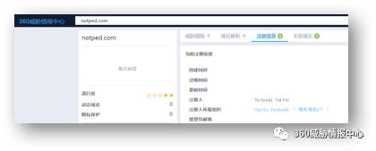 而notped.com作为已知的相关恶意域名,我们发现其注册人为Yacboski Curtis,从而找到了一些其他的关联域名,具体见后面的IOC节,由于这些域名并没有找到对应的连接样本,目前只是怀疑,不能确定就是其他的相关恶意域名。