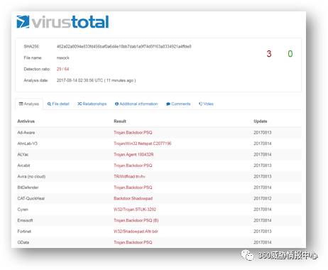 Xshell相关的用于网络通信的组件nssock2.dll被发现存在后门类型的代码,DLL本身有厂商合法的数据签名,但已经被多家安全厂商标记为恶意: