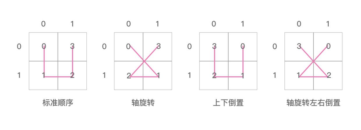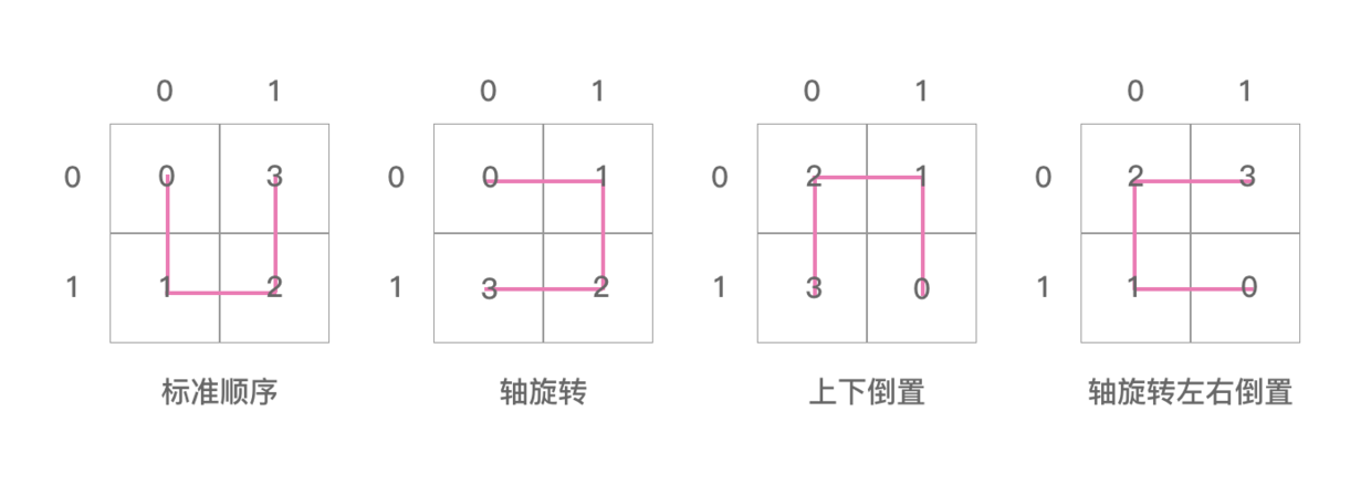看上图,16,17,18,19对应的是 posToIJ 数组轴旋转的情况,所以17是位于轴旋转图的数字1代表的格子中。这时 orientation = 1 。