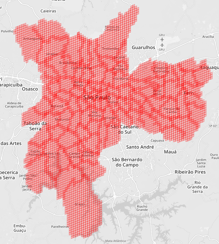 用相同的 Cell 也可以达到相同的目的,上图就是用相同 Level 的 Cell 覆盖了整个圣保罗城市。