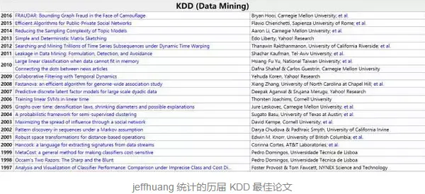 据AI科技大本营了解,SIGKDD 是美国计算机学会 ACM 旗下数据挖掘和知识发现的专业组织,KDD 的英文全称就是 Knowledge Discovery and Data Mining。SIGKDD 每年主办的 KDD 大会,是该领域的最高学术会议,每年都吸引两千多与会者,大部分来自产业界,学术论文的接收比例不超过 20%。