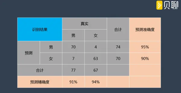 l 预测准确度和精确度,都高于90%;其中男性的预测准确度更高,女性的预测精确度更高;说明相对而言,女性用户一般不会采用男性化字眼的名字。