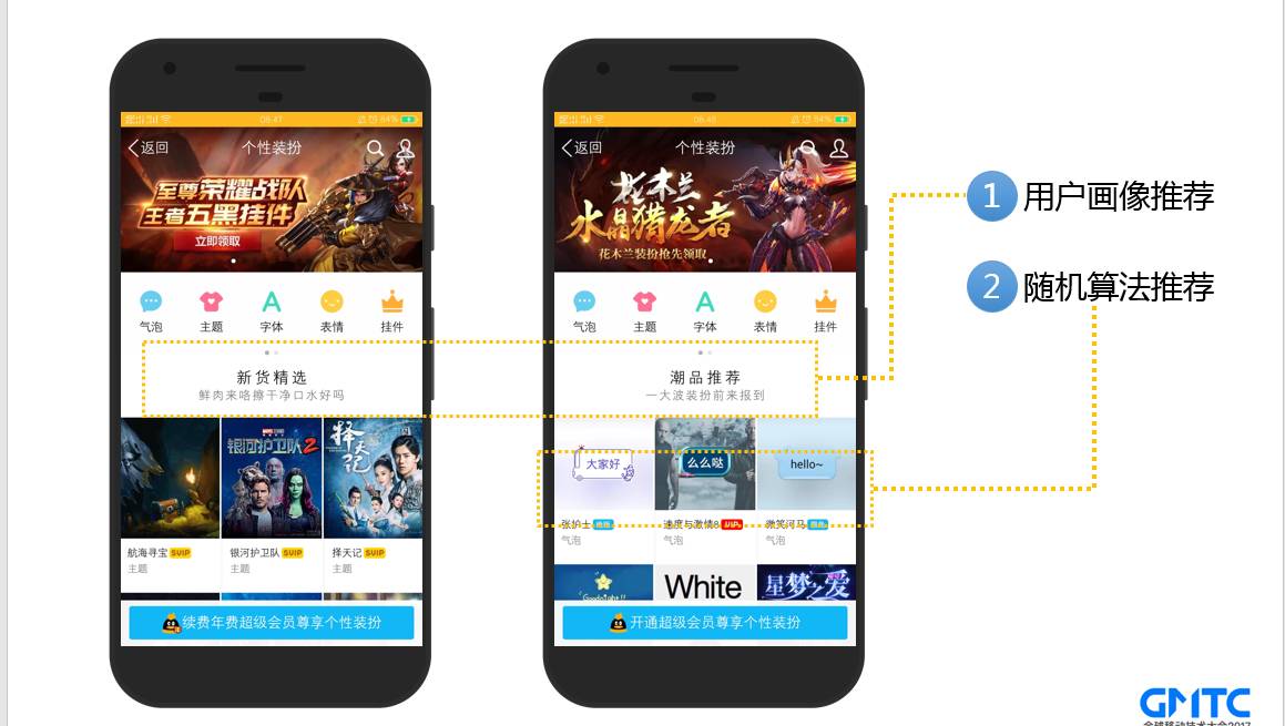 之前我们页面内容的数据主要是由产品经理要配置的,用户看到的内容基本都是一样的。而现在页面为了更好地为用户推荐喜欢的内容,我们后台引入机器学习和随机算法来做智能个性化推荐。比如左边新用户推荐的是新货精选,而右边活跃用户展示的是潮品推荐。另外还有部分的内容是随机算法推荐的。这意味着不同用户看到的内容是不同的,同一个用户不同时间看到的内容也有可能不同。