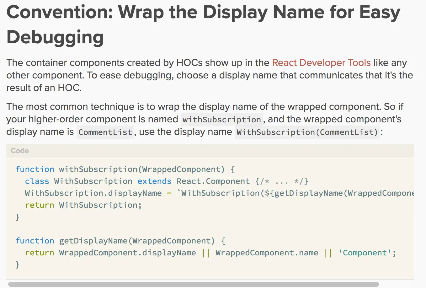 一句话总结,为了避免在调试时,因为高阶组件的存在而导致满屏的HOC(以上述代码为例),可以设置类的displayName属性修改组件的名称。