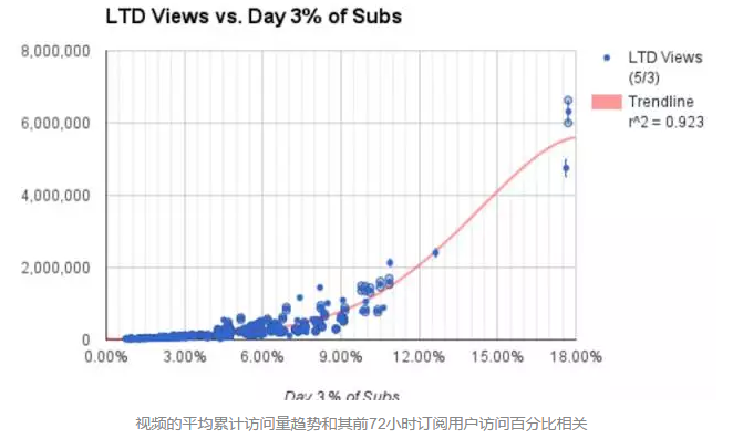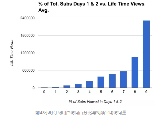 这说明了为什么你的订阅用户的前72小时的访问量如此重要。订阅用户是在第一天就可以观看你的视频的人。他们也最可能点击该频道的缩略图,因为他们熟悉你的品牌。