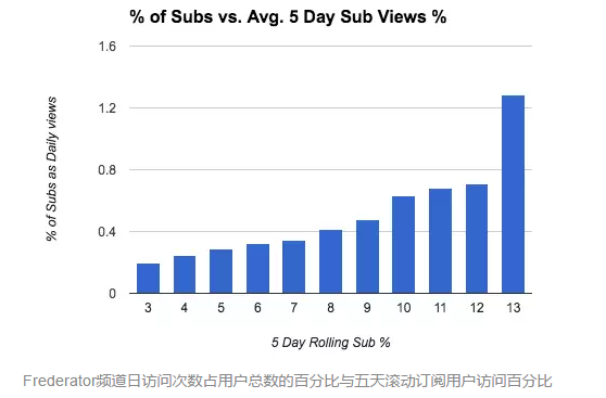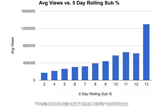 第二个图表显示平均每日访问次数和频道的五天滚动订阅用户访问百分比关系。