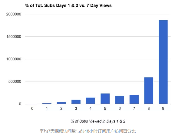 这表明,频道的持续性和访问量之间存在相关性,而访问量又表现为订阅用户访问的百分比。