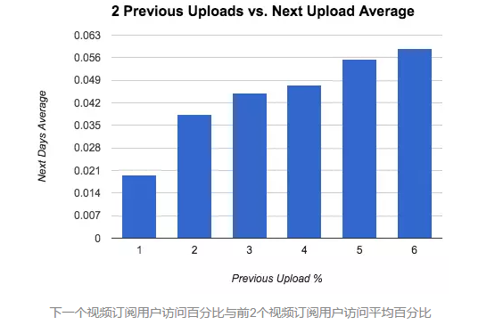 下面这个图显示,如果Frederator上一次上传的视频在前48小时内的“访问速度”低(低的定义是指订阅用户访问百分比不到5%),则下一次上传也将受到负面影响。