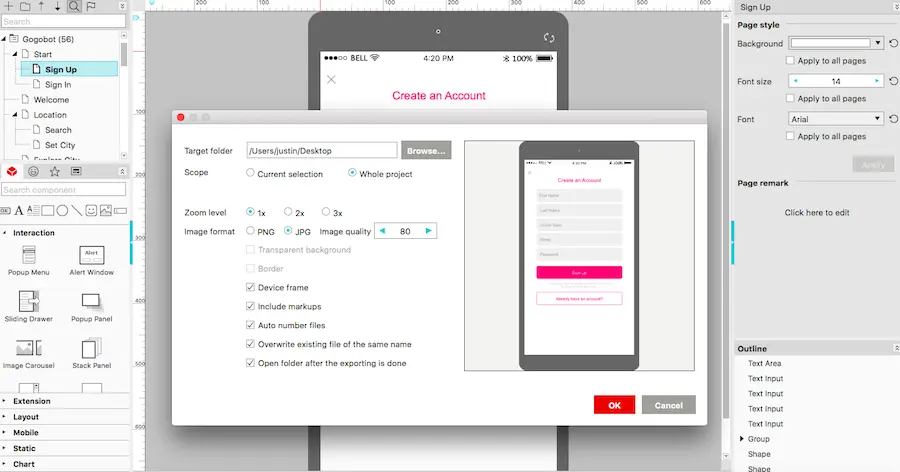 • 图片导出预览,多种导出选项,支持PNG及JPG格式;
