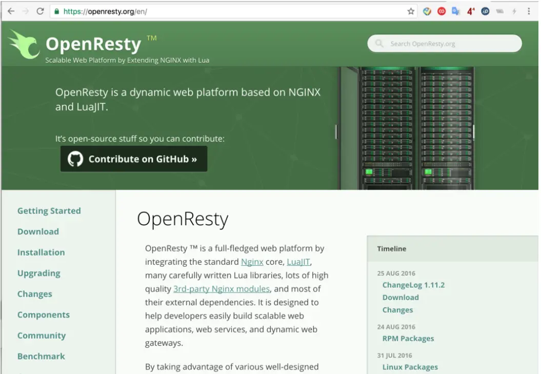 We also have a new OpenResty website. This site was just rewritten in Lua atop OpenResty from scratch. The whole application is in Lua.