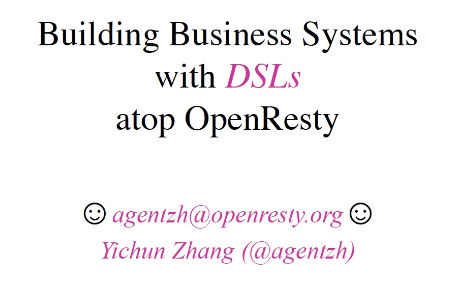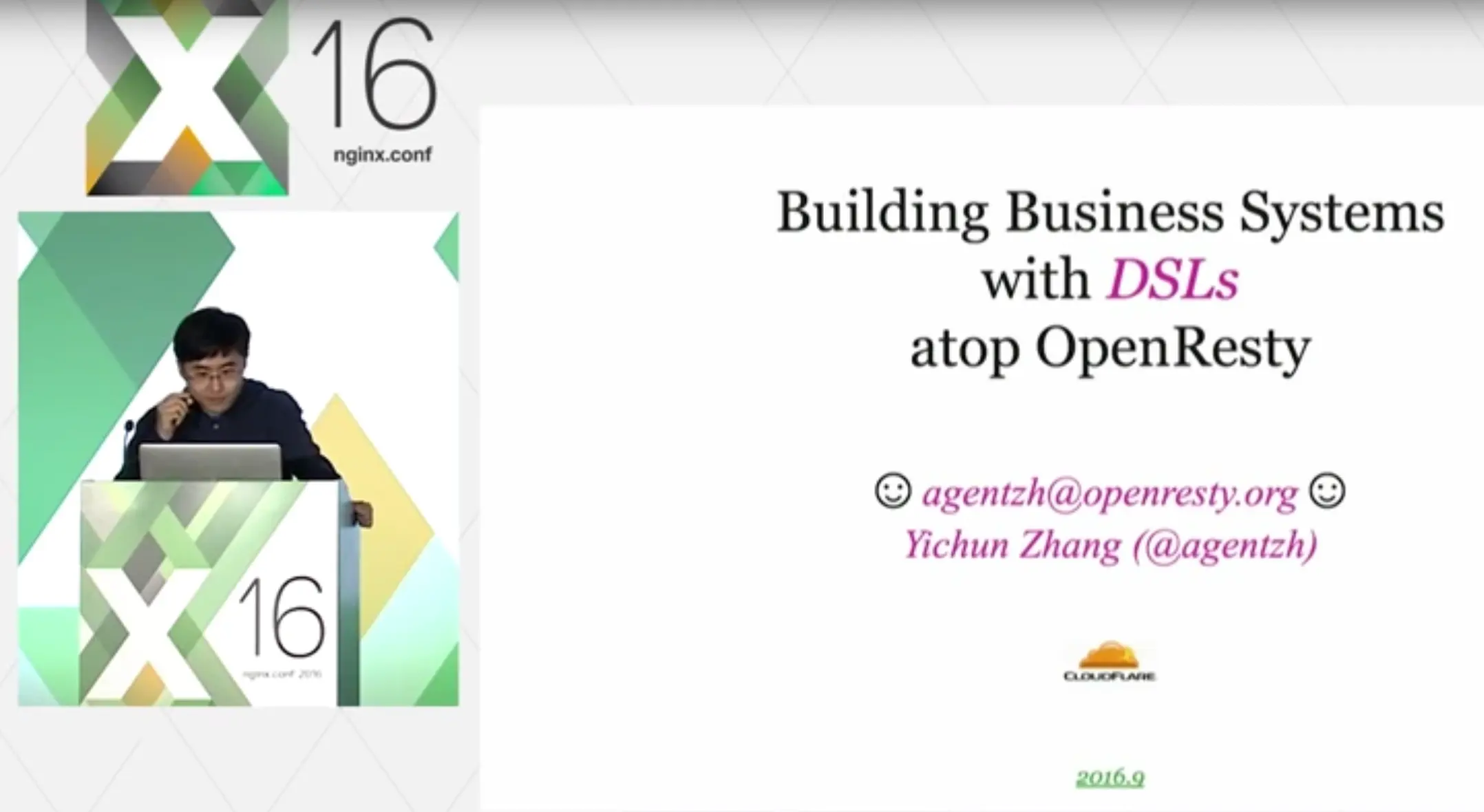 Hello everyone. My name is Yichun Zhang. My webnick is agentzh. I’m currently working for Cloudflare as a systems engineer. I’m very excited to speak here. It’s a big room! I think mine is the last talk, which probably means we don’t have a time limit, right? I have prepared a lot of slides.