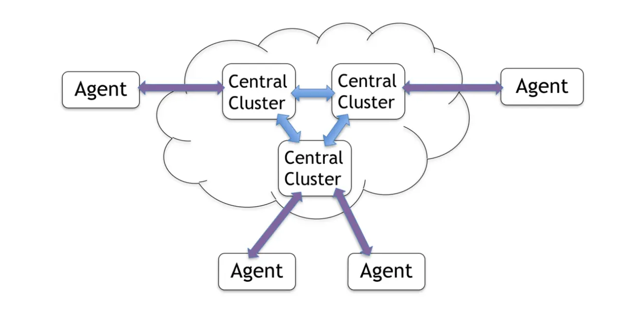 I said that’s a semi-P2P, right? Why’s that? Because it has to have some kind of “central,” but it’s a mesh of central clusters. It could be just a few big data centers, and many paths can sign up to a central network. And all in those forms may stay full network. It can be geographically large.