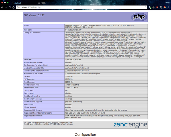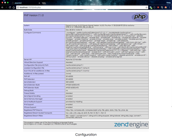 到此,这篇文章就结束了。你已经完成掌握了 Apache 2.4 和各个版本 PHP 的安装,并且能够在 5.5 5.6 7.0 7.1 中快速切换 PHP 版本。原作者还写了两外两篇文章,分别是 macOS 10.12 Sierra Apache Setup: MySQL, APC & More 和 macOS 10.12 Sierra Apache Setup: SSL,近期内我也会将它们翻译成中文,并加入自己的实践总结。
