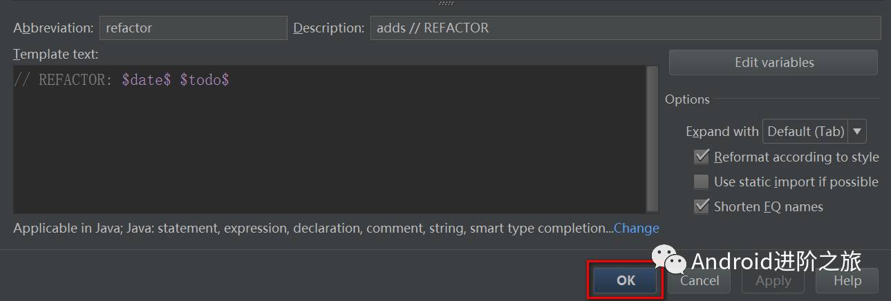 下面,跟随我一起添加一个 REFACTOR 的代码模版吧。