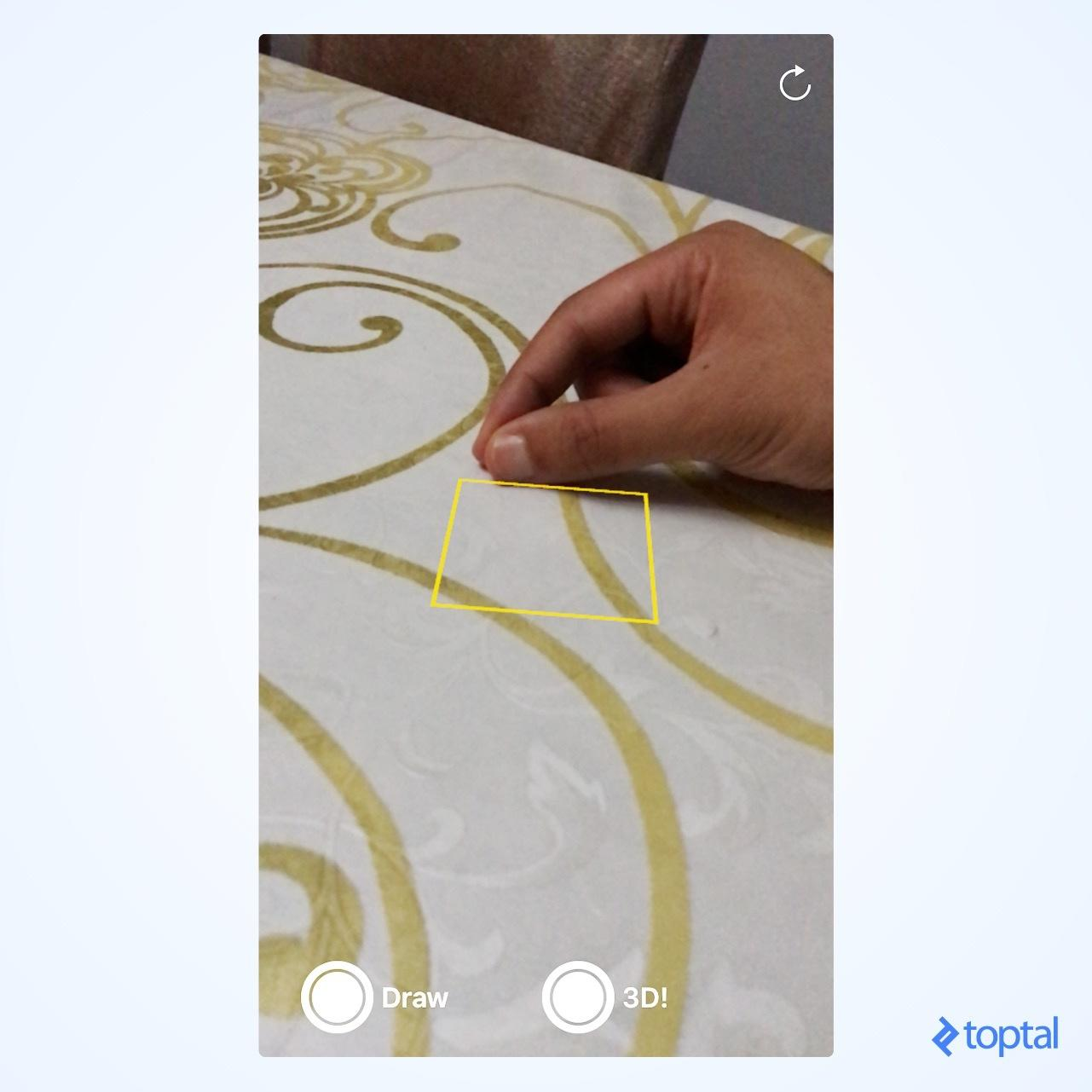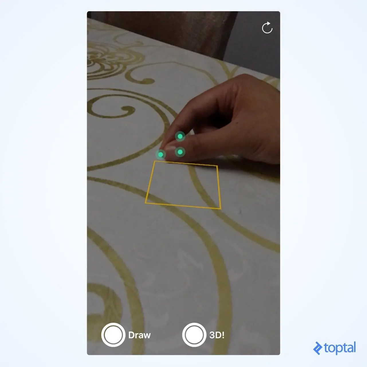 为了简单起见,我们会使用一些原生的绘图方法。对于手指的新位置,我们会在被检测到的平面上放置一个非常小的圆角 box,高度几乎为零。看起来就像一个点一样。用户完成绘制并点击 3D 按钮后,则会根据用户手指的移动改变放置对象的高度。
