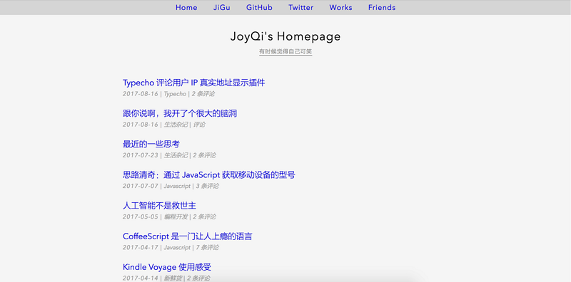 这是 @joyqi 很早以前写的一篇博文。博文中他描述了个人博客的的现状: