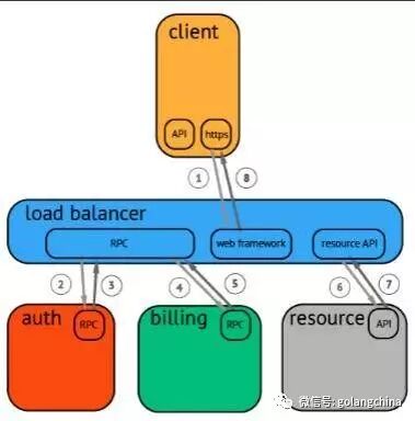图 4是一个基本的 tracing, 大家可以看到,从一个客户端发出的请求,它第一个事情可能就是做一个 auth,然后请求用户的账单信息,然后再读取其他资源。耗费节点三个,然后再请求流出系统的时候我们做一个聚合,这就是基本的工作流程。