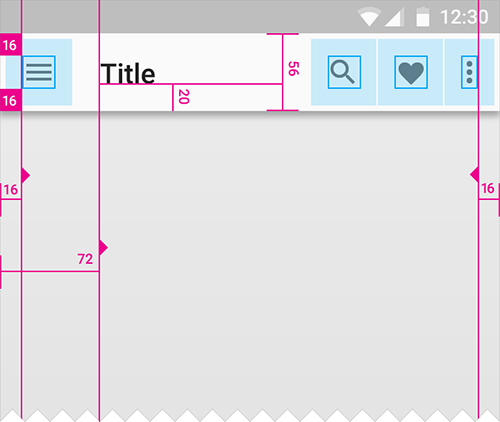 应用栏左、右内边距: 16dp