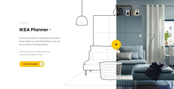 △ 利用黄色的播放图标,让左边的线描图与右侧实景图有较好的过渡,同时也成为画面的点睛之笔。
