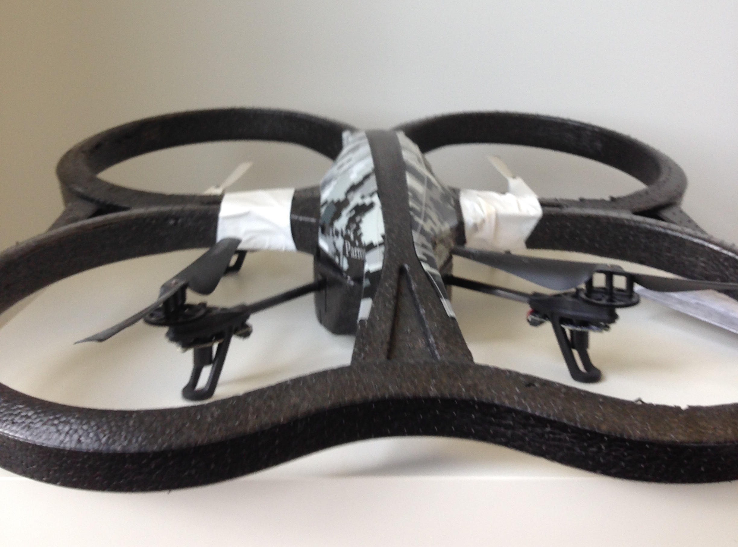 但不要担心!我的无人机跌跌撞撞,但它是一个坚强的小孩 —— **专业提示:**你可以使用胶带来修补你的无人机。只要确保无人机的每一面都是相同的重量,这样它才是平衡的!
