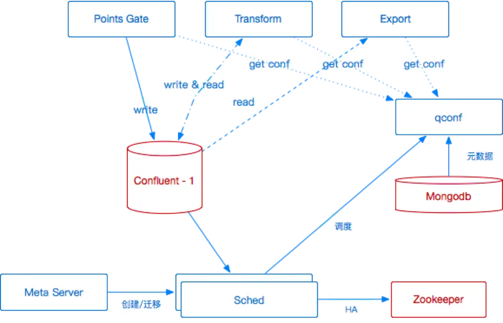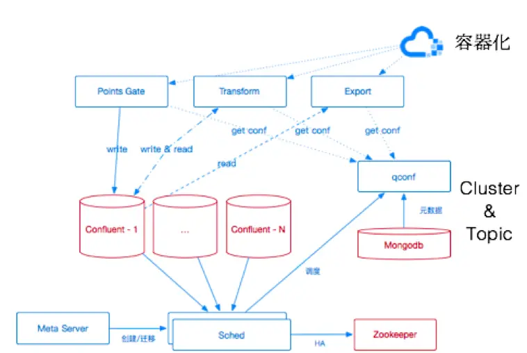 其次我们对Points Gate、Transform、Export中无状态组件进行了容器化处理,利用我们七牛内部的容器云平台,实现了无状态服务的快速部署、扩容以及灰度发布等需求。