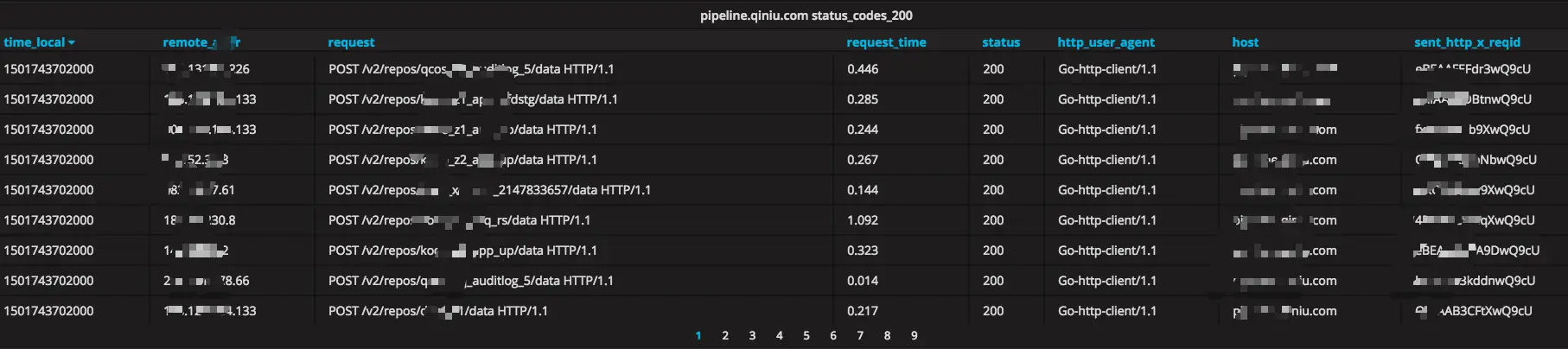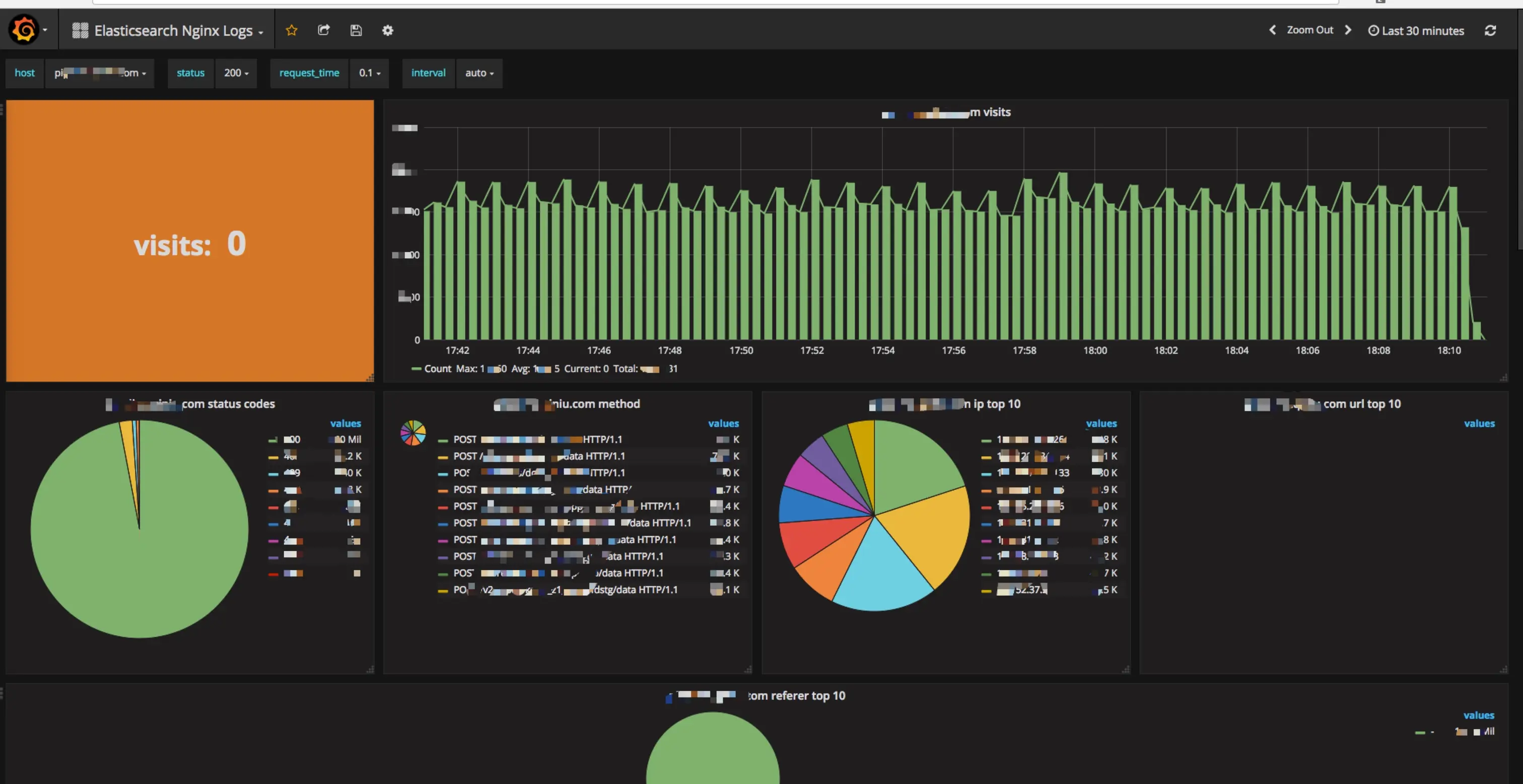 可见,仅仅几步简单的操作,你就借助Pandora实现了海量日志的实时监控,通过 nginx日志 完整而详尽的 了解业务的流量入口的各类情况。