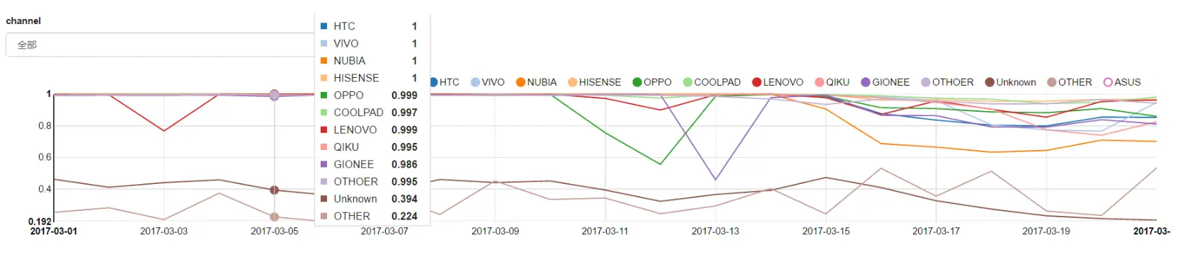 不同时间正常响应比重,如图 38 所示